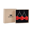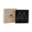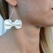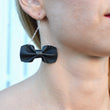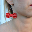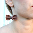- Kierrätetystä nahasta käsityönä valmistettu rusettikorvakoru.