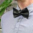 Nahkarusetin pukeminen on helppoa ja nopeaa kiinnittämällä kaulahihnan soljen. Nahkainen rusetti pysyy muodossaan ja särmikkäänä, vaikka säätäisit kaulanauhan hieman löysemmälle. Näin ollen voit jättää vaikka kauluspaidan ylänapin auki.